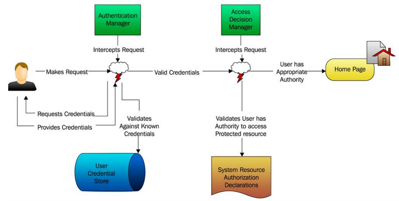 AuthenticationManager : 사용자 인증 관련 처리 AccessDecisionManager : 사용자가 보호받는 리소스에 접근할 수 있는 적절한 권한이 있는지 확인