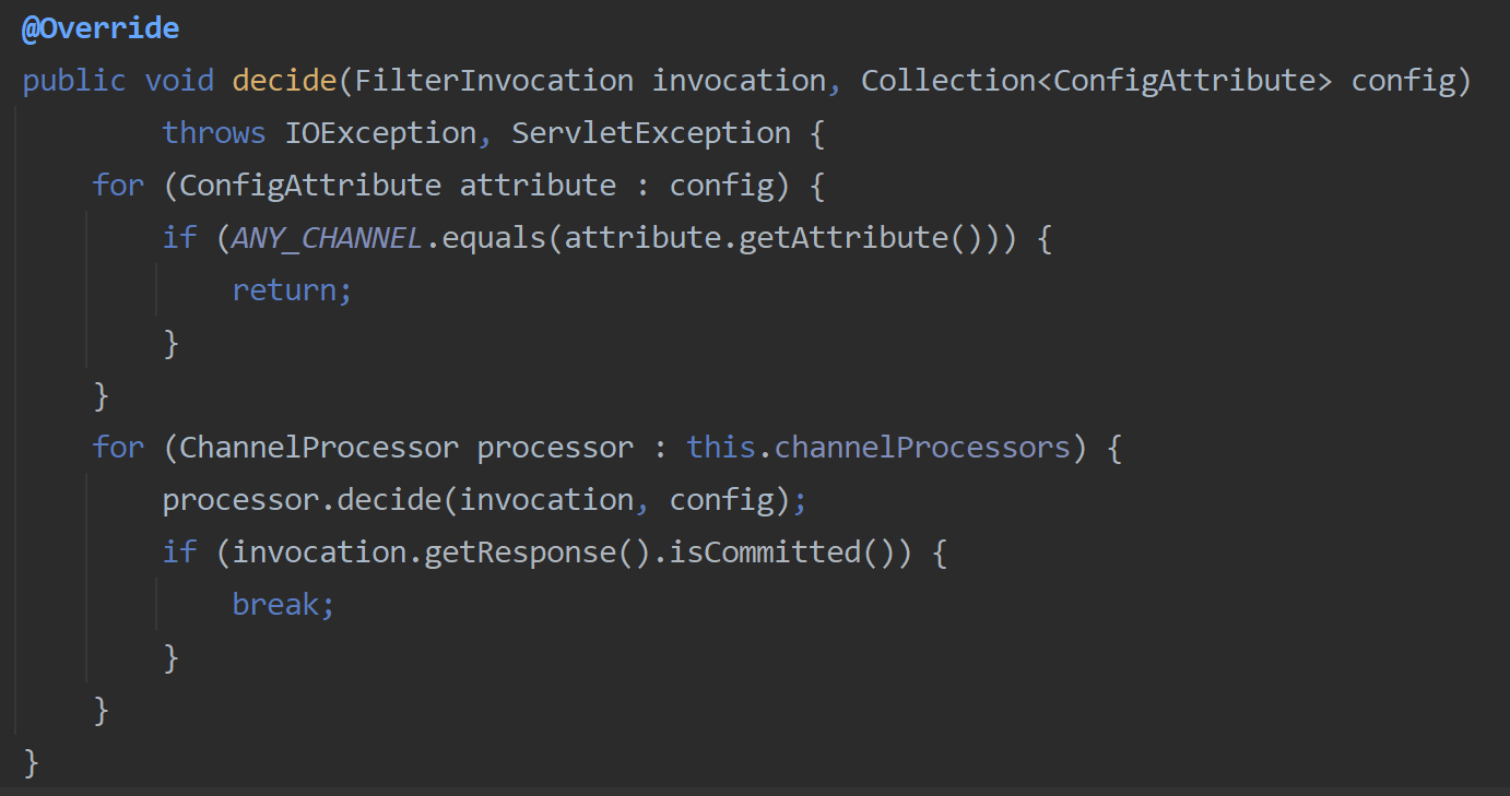 ChannelDecisionManager 의 decide 의 구현체를 보면,
