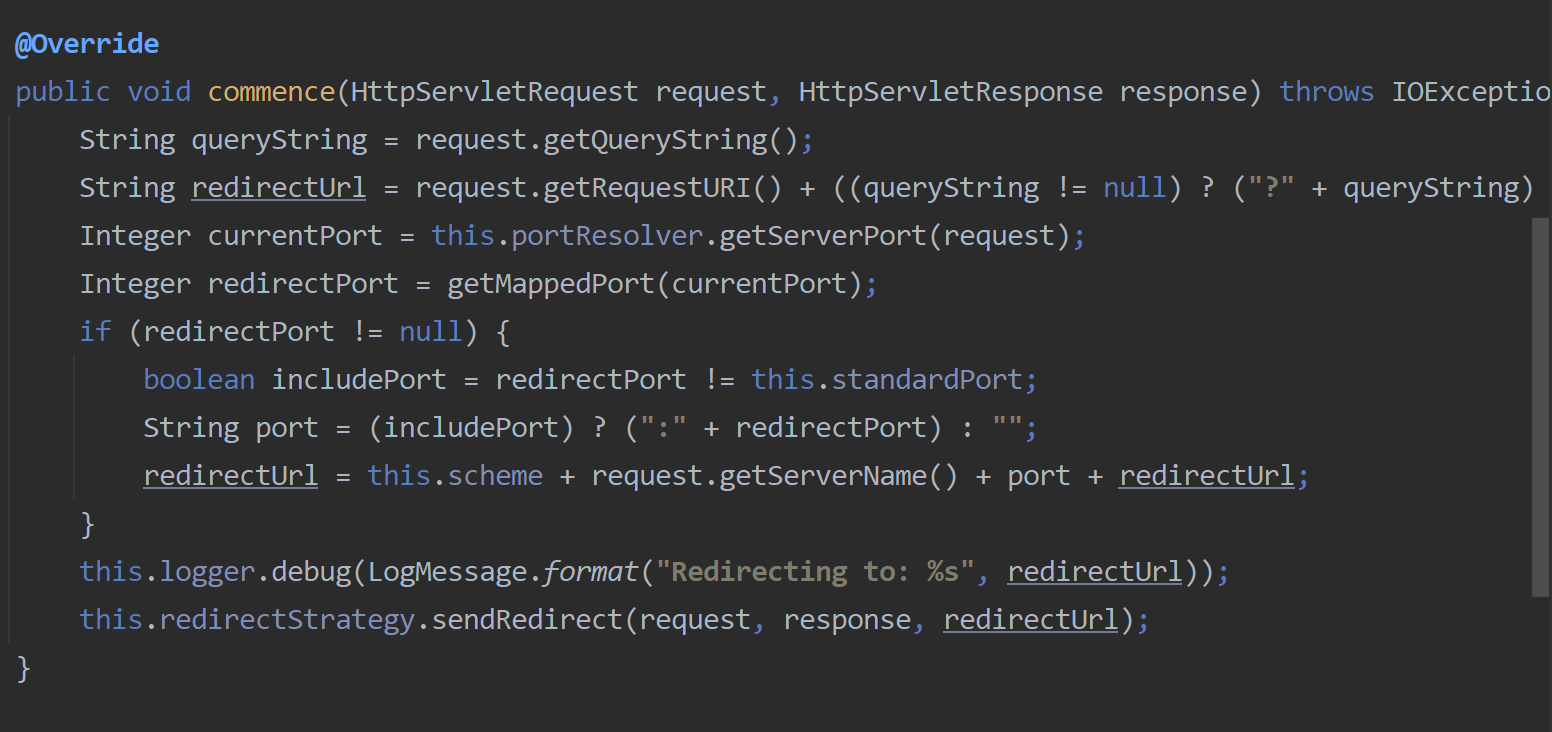 ChannelProcessingFilter는 HTTPS와 같은 보안 채널이 필요한 요청을 처리하도록 특별히 설계되었으며 필요한 경우 요청을 보안 채널로 리디렉션할 수 있습니다. 일반적으로 AuthenticationFilter 및 AuthorizationFilter와 같은 다른 보안 필터보다 먼저 필터 체인의 초기에 배치됩니다.